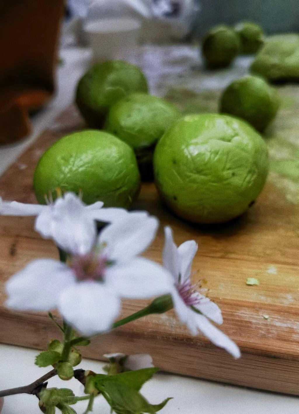 “这个青团就像咱们包油糕一样,给我再来点豆沙馅。”活动现场,天井小院不断传来学生们包青团的声音,热闹非凡。社团工作人员将备好的青面团和馅料分给大家并展示了青团制作过程:将艾草青汁拌进糯米粉里,加入粘米粉增加软糯口感,用温水调匀,再把豆沙馅和咸蛋黄肉松馅包裹住,搓圆即可。大家学习基本手法后,纷纷开始自己动手包。“我包的这个团子怎么会裂开?”“面要多揉揉,变软点就不会裂了。”大家学着一边揉面粉、调馅料,裹青团,一边聊着清明节做青团、吃青团的文化习俗,在劳动中传承清明文化,追忆亲人,珍惜当下。