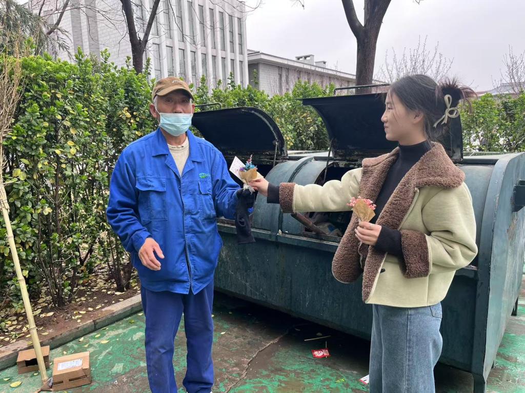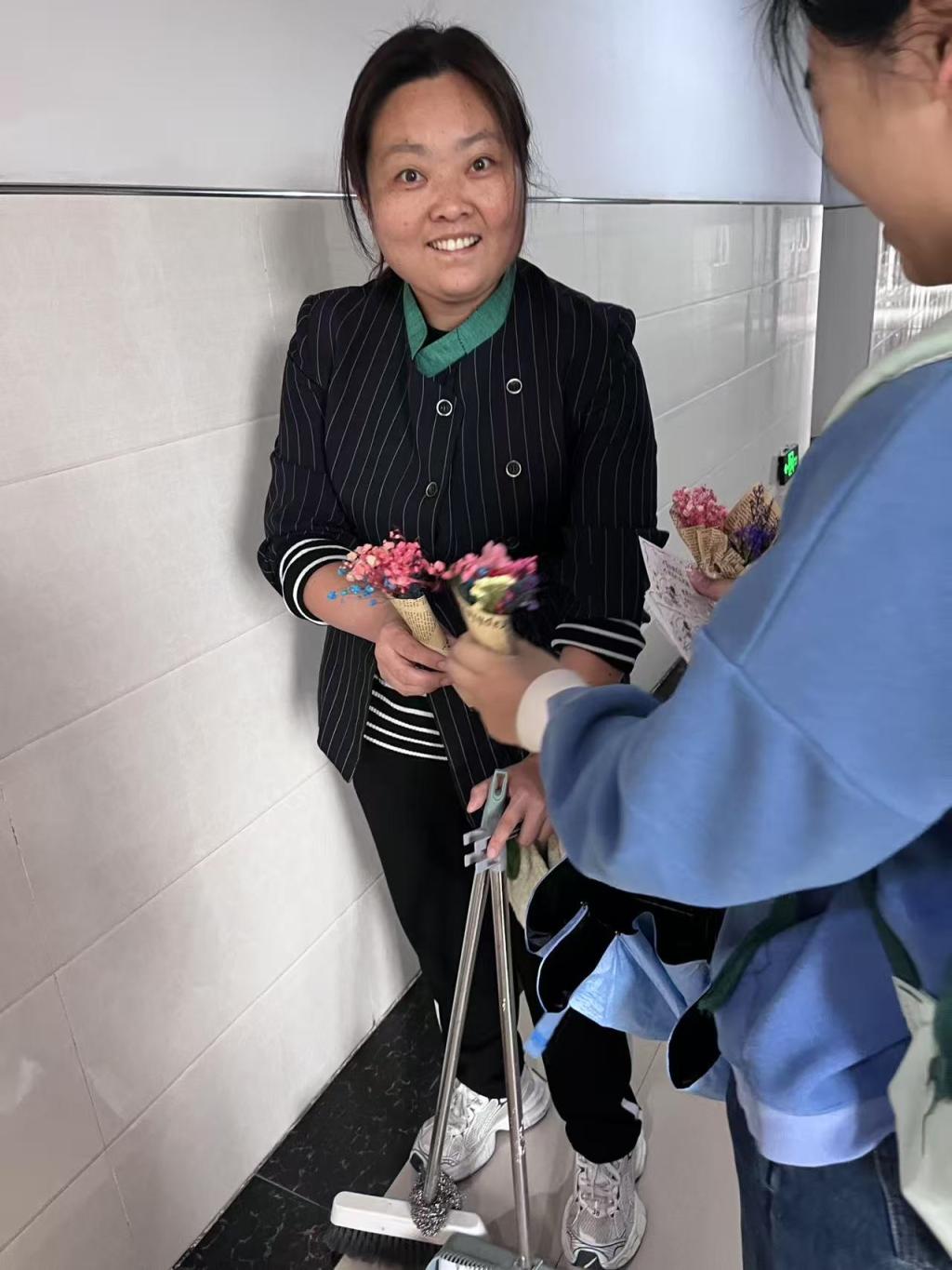 完成制作后,同学们将饱含心意的花束赠送给育人导师、生活导师、校园环卫工人、志愿者等校园守护者。一束束干花不仅为生活增添了一抹亮色,更传递着浓浓的青春温度,这些朴素而真挚的礼物,让平凡的日常多了一份诗意,让忙碌的工作多了一丝温暖。