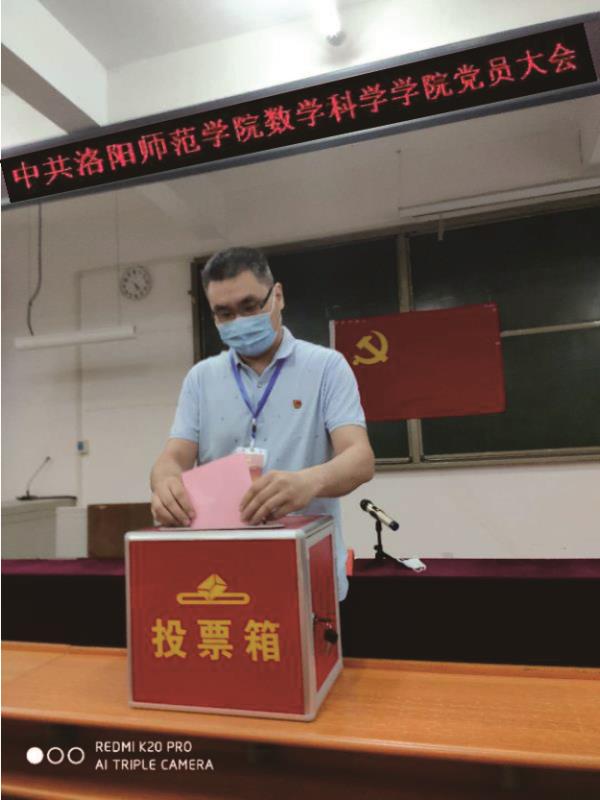 会上选举产生了数学科学学院新一届党委委员,于海、王天银、张丽、杨继真、赵文艳、曹建立、董朝宗等7位同志为新一届党委委员。