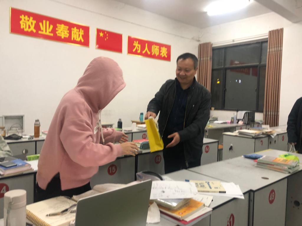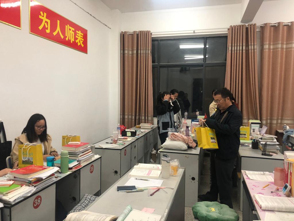 为鼓励我院考研学生以饱满的精神状态迎接考试,帮助他们树立考研信心,10月6日晚上11点,我院党委书记董朝宗、院长张之正、班子成员及辅导员老师走进考研自习室看望慰问考研学生,为他们送上“考研福袋”,为考研学生加油助力。