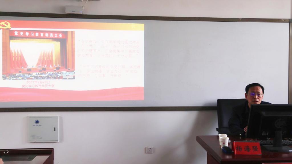 杨海强结合数学学科特点,以“数说发展,学史增信”为主题,以我党百年数据变化历程为切入点从“数据历程”“数读增长”“数字前景”“学史增信”四个方面进行党史教育;透过党员队伍的发展壮大,取得的辉煌成就,阐释了“中国共产党为什么能”;透过1968-2020年中外经济增长数字对比和2020年社会发展数据、中国社会快速发展变化,阐释了“中国特色社会主义为什么好”;透过国家“十四五期间主要目标任务”前景谋划和数据阐释,坚定了未来发展的信心和决心;最后,杨海强要求同学们要通过党史学习增强“四个自信”,归根结底就是要把学习成果转化为不可撼动的理想信念,转化为正确的世界观、人生观、价值观,自觉做共产主义远大理想和中国特色社会主义共同理想的坚定信仰者和忠诚实践者。