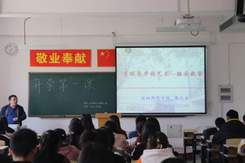 为做好大学生思想政治工作,培养学生的时代担当精神,我院于4月14日14:30在A10-209举行2021年开学第一课。此次活动由张之正院长主讲,20级应用数学一班的全体同学参会。