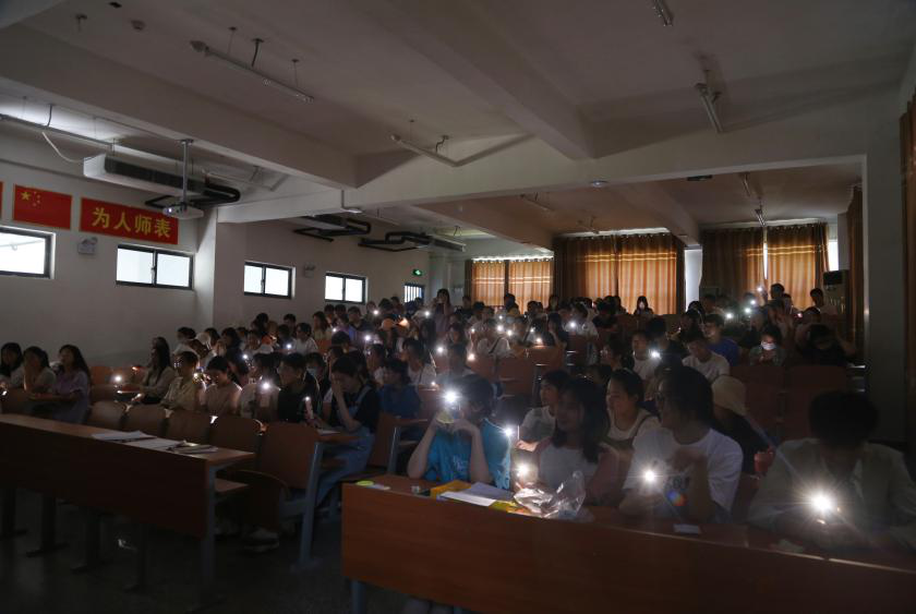 首先,郝老师传达了学院领导老师对毕业生捐赠活动的高度关注和指导意见,并正式启动捐赠活动。本次活动分为三个篇章:第一篇章:爱心传递。一本书、一个废旧的书包、一块黑板……毕业生纷纷捐赠闲置物品,用实行助力贫困学子的求学希冀。第二篇章:爱心寄语。毕业生用文字表述内心情愫,为贫困学子加油鼓劲儿。第三篇章:为你歌唱。全体毕业生深情合唱歌曲《和你一样》,毕业生挥舞闪光灯,现场氛围温情感动。最后,郝老师再次为毕业生的爱心捐赠点赞,并强调毕业生要做好助学贷款毕业确认申请和还款工作,勉励毕业生心怀感恩、永葆激情。