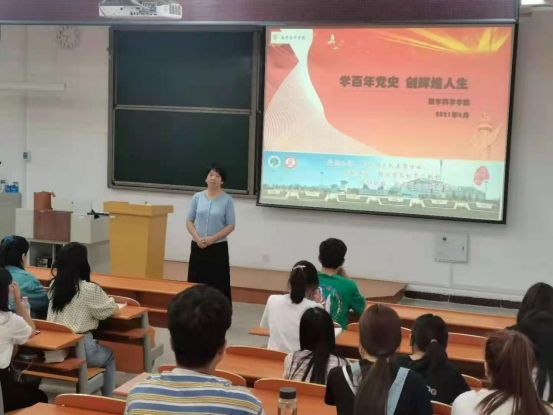 6月3日晚,副书记赵文艳以《学百年党史 创辉煌人生》为题,在数学楼103为毕业生党员上了最后一节党课。