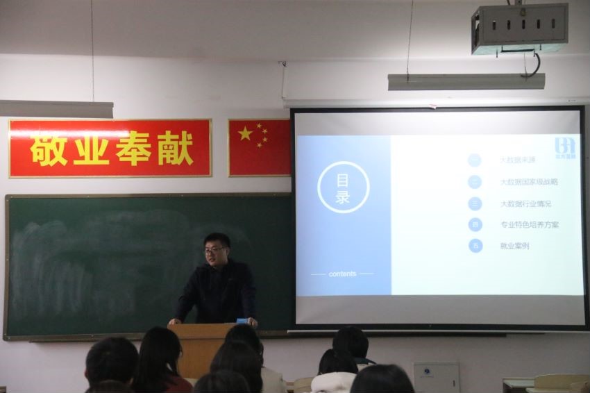 12月16日下午,我院于A10-208开展主题为“大数据行业职业规划”的讲座,青岛北方互联河南分公司大数据项目负责人虎博老师为主讲人,19级金融、统计专业学生参会。