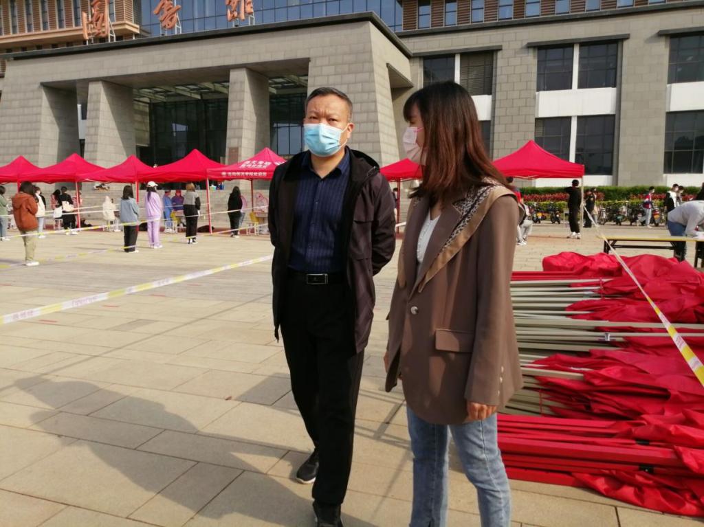 学院党委书记董朝宗、副书记赵文艳和我院广大教职工踊跃报名,积极争当志愿服务者,提前半小时奔赴现场一起承担此次核酸的志愿服务工作,围绕服务保障、疏导分流,分组登记、维持现场秩序等工作有序开展,在检测现场随处可见我院教职工志愿者忙碌的身影,大家不惧炎热,默默奉献,无怨无悔,全身心投入到整个检测过程中,用实际行动践行着敬业奉献,为人师表的洛师精神,现场井然有序,高效规范,设置了隔离带,划分了登记区、采集区。学生们佩戴口罩,保持一米间隔距离,学生有序排队进行核酸采样,检测后所有人员有序离开。