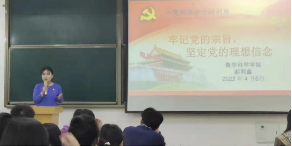 4月6日晚19:00,我院在A10-103教室开展“牢记党的宗旨坚定党的信念”主题党课,辅导员郝同鑫担任主讲。