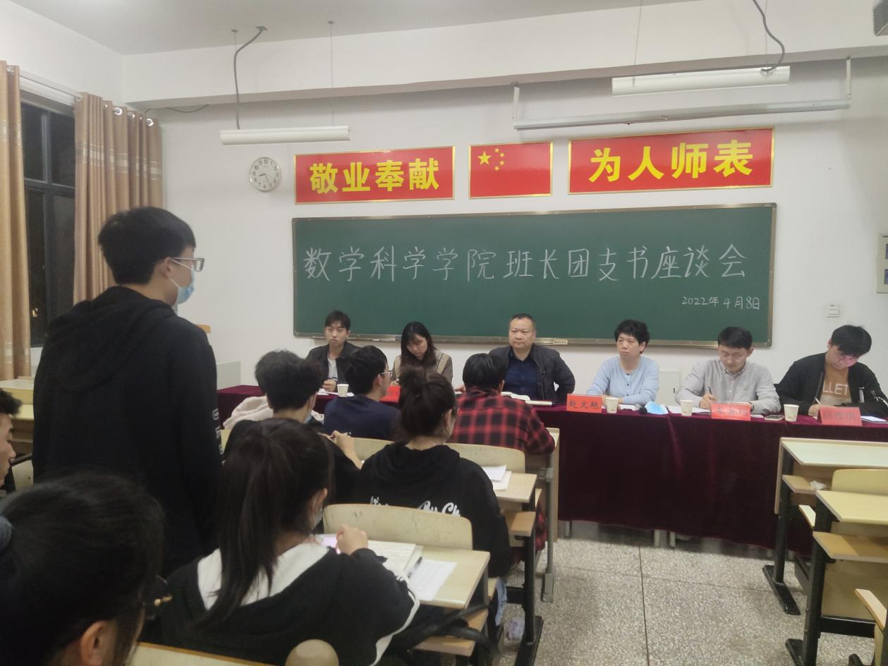 为进一步做好我院在疫情防控常态下学生的思想政治教育和防电信诈骗工作,4月8日晚上7点半,我院在数学楼A10-208召开学生干部座谈会。党委书记董朝宗、副书记赵文艳、辅导员赵继仙、李安珂、薛雅琪、丁文轩和各班班长、团支书参加了此次会议。