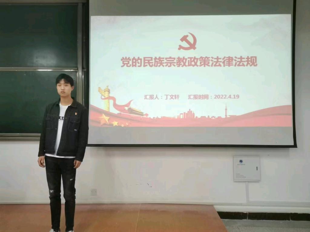为加强我院学生对党的民族宗教政策法律法规的认识,4月19日晚,我院辅导员丁文轩于A10-103开展以“党的民族宗教政策法律法规”为主题的党课培训。