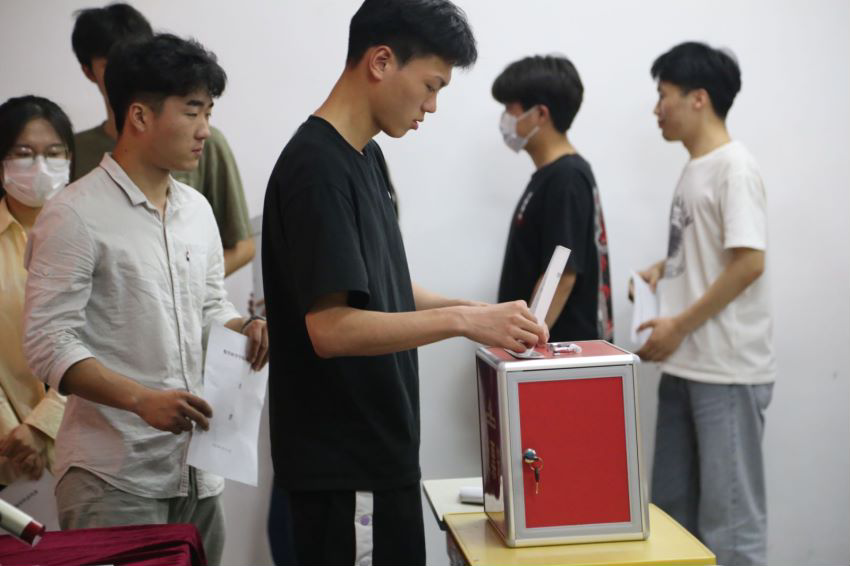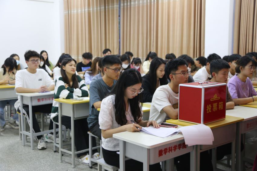 大会由辅导员李安珂主持,首先李老师对上届学生干部在过去一年的辛勤付出表示诚挚的问候和感谢,其次2021级学生会主席杨淑增做年度工作总结,表示自己在一年任职期间收获颇多,并希望新一届主席团成员可以继续讲好数学故事,传递数学声音。紧接着,秉持着公开、公平、公正的原则,选出了新一届学生会主席团成员、出席校学代会代表候选人名单和校学代会正式代表,最后辅导员李安珂老师对新当选的学生干部表示祝贺,也寄望于新一届主席团成员,希望他们立足本职,把握好工作方向,走进学生,服务学生。