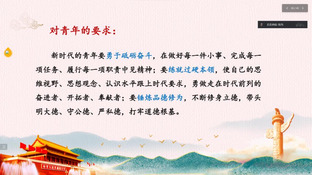 本次党课引导同学们思考如何成为一名合格党员,激励同学们勇立时代潮头,争当时代先锋,不负时代,不负人民。