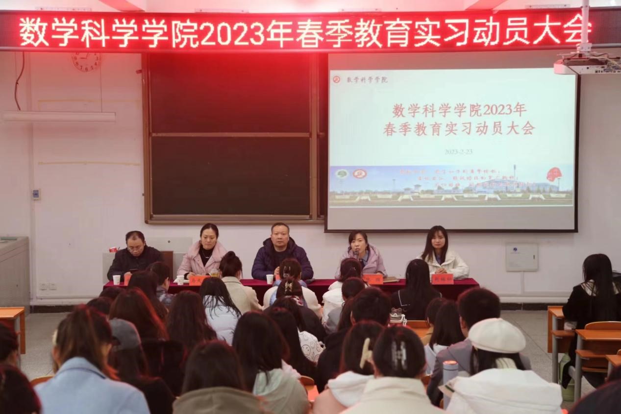 为进一步做好2020级学生教育实习前的各项准备,推进实习工作顺利开展。2月23日,我院于A10-103召开2020级学生教育实习动员大会。党委书记董朝宗、党委副书记马天天、副院长张丽、实习负责老师余天虎、辅导员赵继仙和2020级数学与应用数学全体学生出席会议,会议由张丽主持。