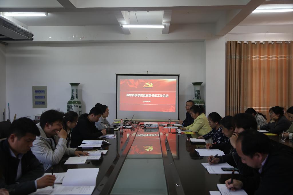 为深入学习贯彻习近平新时代中国特色社会主义思想和党的二十大精神,进一步提升党支部书记的党性修养和党建实务操作能力,4月27日,我院举办党支部书记论坛,院党委书记董朝宗、党委副书记马天天、各党支部委员参加本次论坛,论坛由董朝宗主持。