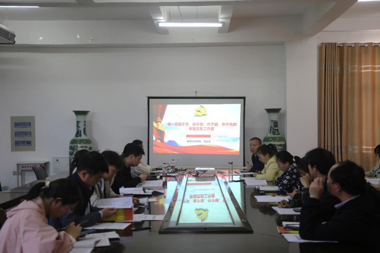 首先,赵继仙介绍党员发展流程,她结合《洛阳师范学院关于实行“双推双评三全程”进一步规范发展党员工作的实施意见》《洛阳师范学院关于进一步做好推荐优秀团员作党的发展对象工作细则》详细介绍入团推优标准、成为入党积极分子的条件、“十个一”成绩单等,强调我院党员发展严把入口关,持续推进党员发展工作规范化管理,将成绩优秀、品学兼优的学生作为发展党员重点对象,扎实做好党员发展工作。接下来,马天天以《做一名勤于学、善于思、作于细、争于先的幸福党务工作者》为题,从“勤于学,提升修养和境界”“善于思,破解难题和重点”“作于细,习惯务实和精细”“争于先,勇当先锋和标杆”等四个方面进行了深入浅出的讲解,并结合自身工作经历为大家分享了如何开展好主题党日活动,对提升支部书记工作能力具有很强的针对性、指导性和可操作性,为各支部做好党员日常教育管理工作提供了工作思路和遵循方法。