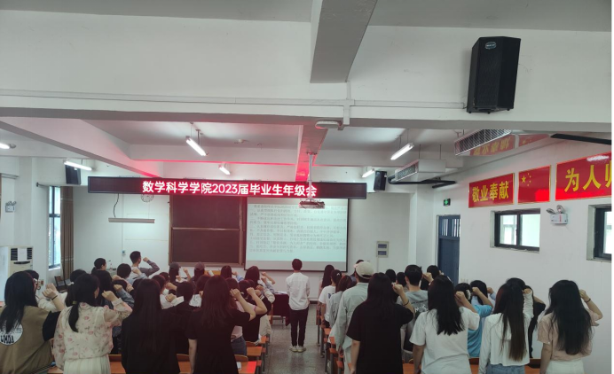 年级会上,全体同学观看廉洁教育警示片《永远在路上》并进行了廉洁承诺宣誓,声声誓言铿锵有力,句句承诺刻骨铭心,充分彰显了毕业生必将保持廉洁底线,清清白白做人,干干净净做事的决心和勇气。张丽对学校第二学士学位的招生工作进行宣讲,鼓励大家积极报名。毕业班辅导员强调同学们要高质量完成毕业论文的撰写、毕业档案归档等工作;要及时关注招聘信息、积极就业;同时,提醒大家毕业季要格外注意自身人身和财产安全,务必做到夜间不外出,按时就寝。