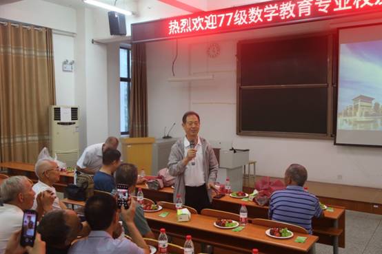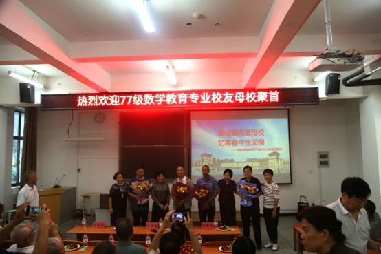 莘莘学子心,难忘母校情,7月15日,77级数学教育专业校友重返母校再度聚首,校友们在A10-103相聚一堂,畅叙情谊,追忆往昔,寄望未来。杨中甫、张鹏祥、刘麦学、李汉章、董朝宗、刘迎照出席活动。