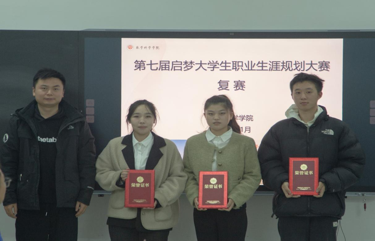 为增强大学生职业生涯规划意识,助力就业育人理念内涵式发展,我院于11月16日下午在A10-316教室举办第七届启梦大学生职业生涯规划大赛复赛。机关一党委办公室副主任赵继仙,数学科学学院辅导员薛雅琪、丁文轩、张浩、杨雅云担任此次大赛的评委。