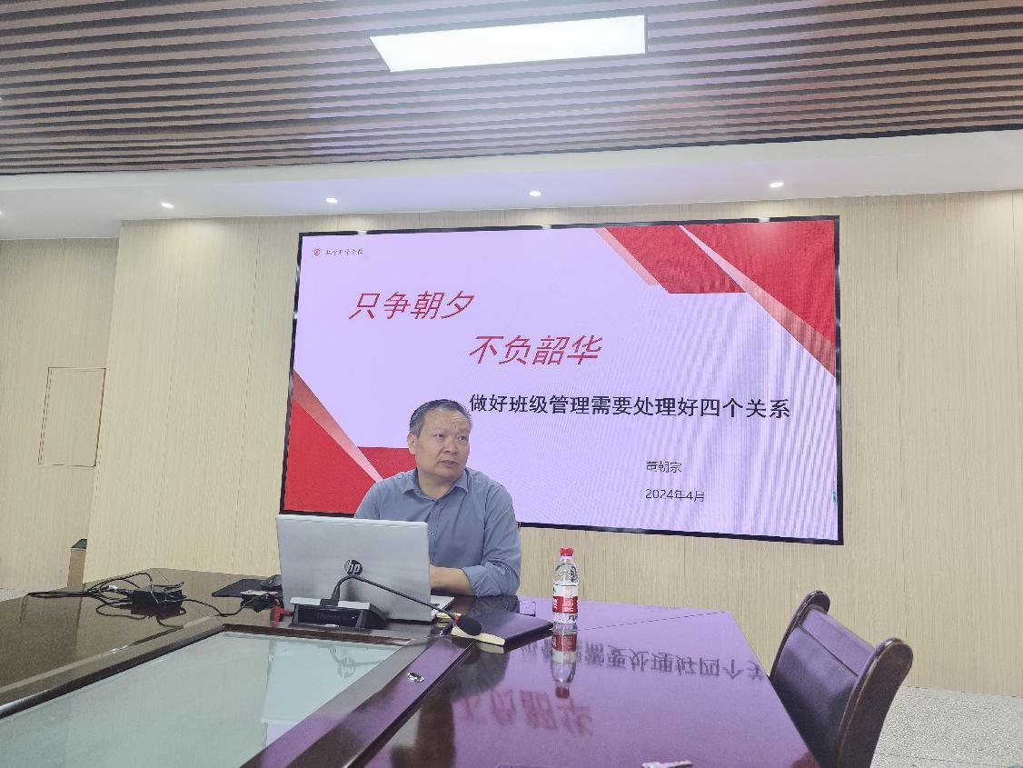 为深入学习贯彻习近平新时代中国特色社会主义思想,巩固拓展主题教育成果,引导学生干部建立良好班风,促进班级管理,4月18日下午,我院党委书记董朝宗在A10-317为大一、大二主要学生干部讲授本学期“思政第一课”。
