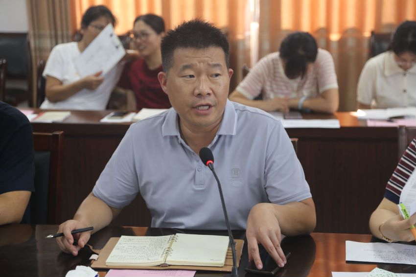 董朝宗对新学期返校学生身心状态、迎新工作、学生安全、防范电信诈骗、网络安全、宿舍卫生、困难认定等工作做出重要部署,他提醒班主任们要时刻关注学生的思想动态,强化对学生的安全教育,加强反诈宣传力度,提高学生网络安全意识,保持宿舍卫生整洁。最后,董朝宗从三个方面进行总结,第一,全员要做到统一思想、通力合作,助力学院新发展;第二,切实增进和学生之间的关系、切实走进学生生活、切实加强学生学风建设和学生管理,加强安全教育、切实落实网络安全问题;第三,深入落实学生管理工作,不仅资助工作十分重要,而且学业预警、考前教育、提高考研率、就业率等问题仍需解决。