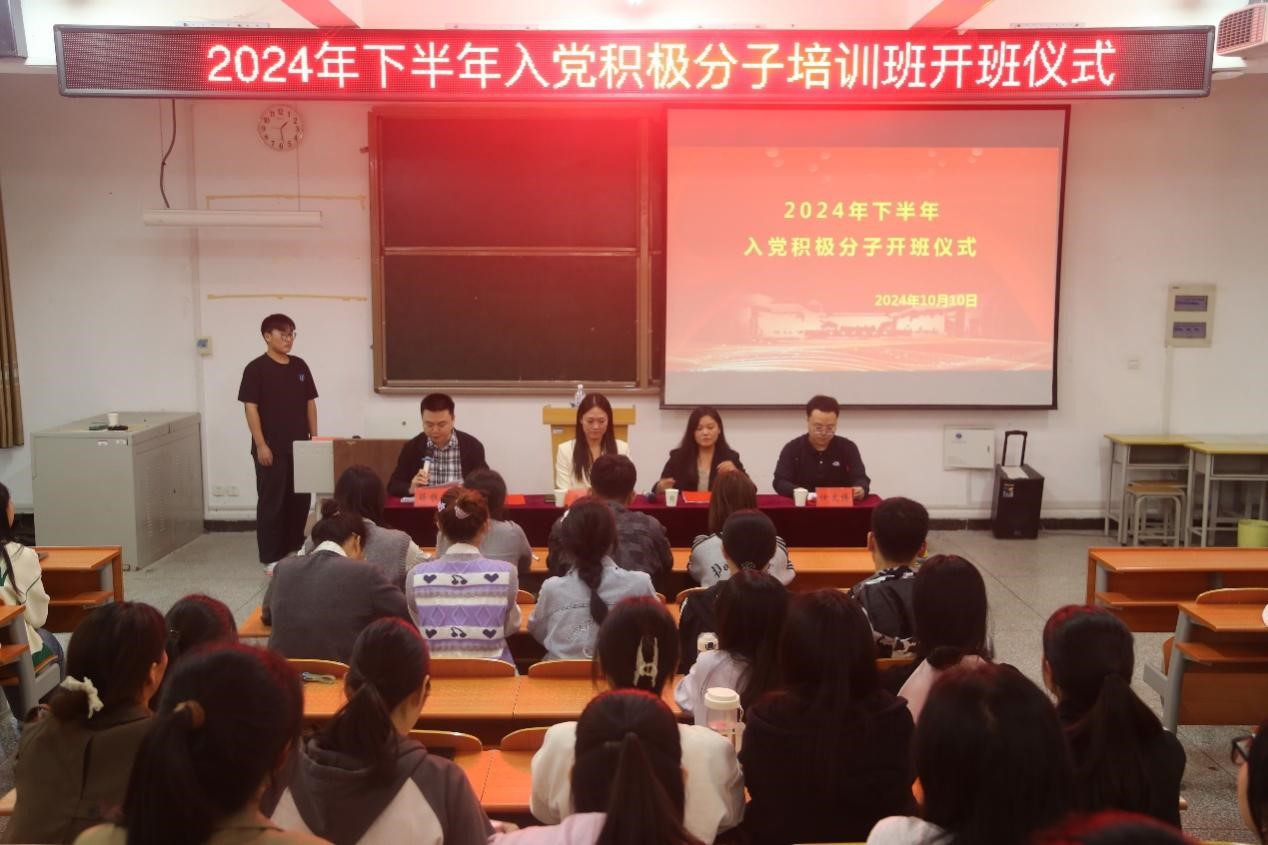为了使入党积极分子坚定理想信念,端正入党动机,更系统地了解和掌握党的基本知识,10月10日,我院在A10-103举行入党积极分子开班仪式。数学科学学院党委副书记马天天、电子商务学院党委副书记周银平、全体辅导员和2024上半年入党积极分子参会。会议由辅导员薛雅琪主持。