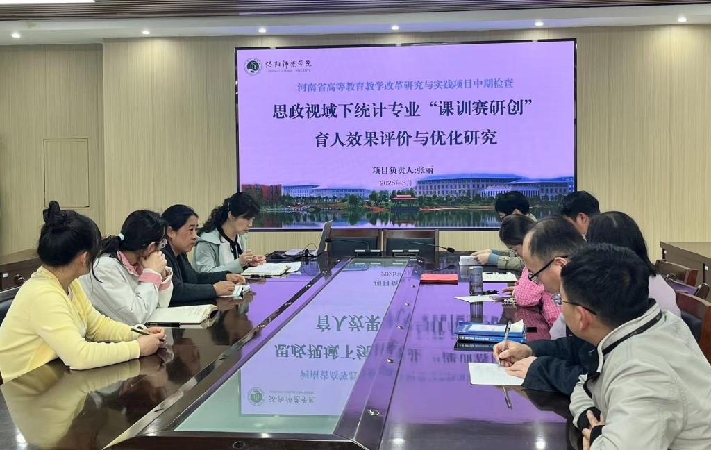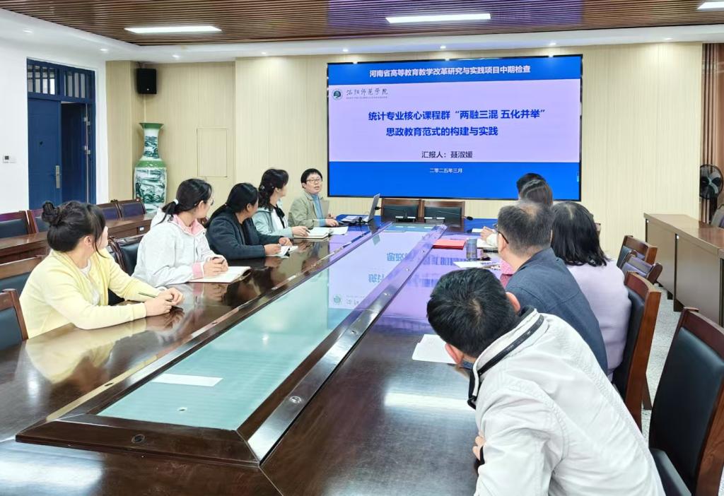 3月27日下午,我院在A10-317召开2024年度河南省高等教育教学改革研究与实践项目《统计专业核心课程群“两融三混 五化并举”思政教育范式的构建与实践》《思政视域下统计专业“课训赛研创”育人效果评价与优化研究》项目研究推进会,项目组全体成员参加。