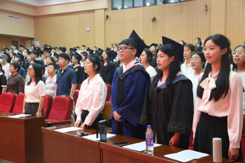 典礼在全体人员起立奏唱校歌中圆满落下帷幕。仪式结束后,毕业生与教师合影留念,定格珍贵的毕业瞬间。