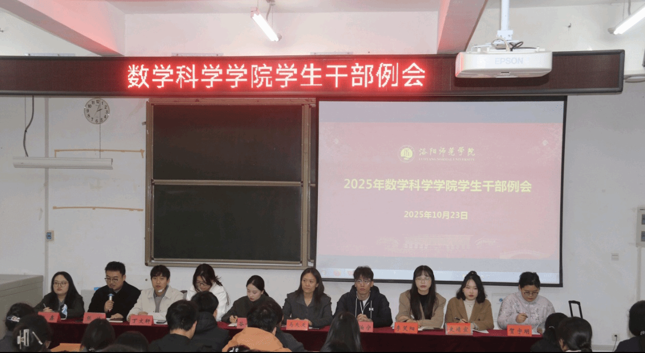 为明确新学期学生工作方向,凝聚团队共识,保障各项工作高效有序推进,数学科学学院于10月23日下午在A10-103教室召开了2025-2026学年第一次学生干部例会。我院党委副书记马天天、全体辅导员及学生会干部参与此次会议。此次会议由张浩老师主持。