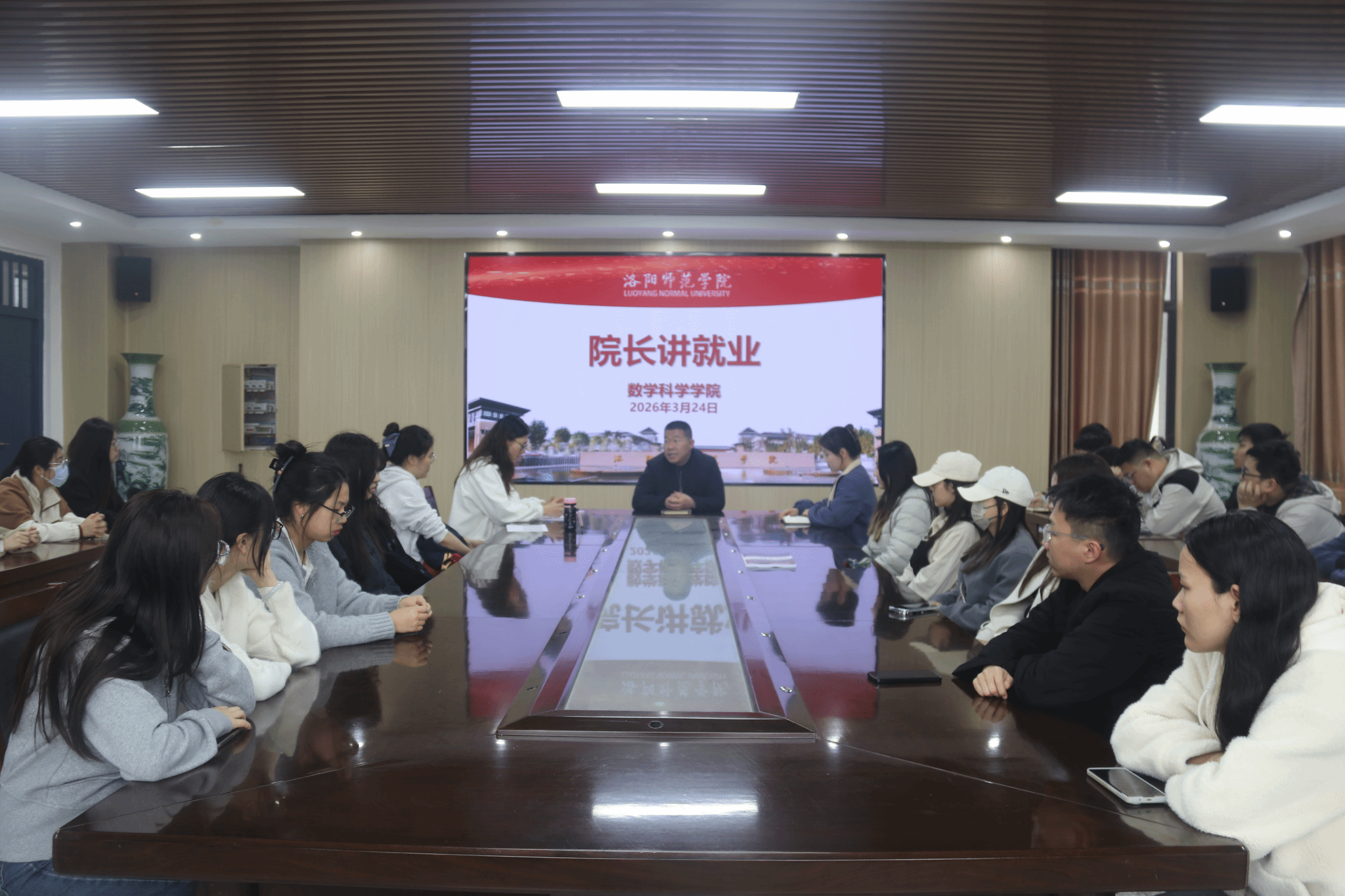 为明确方向、凝聚合力,全面推进2026届毕业生就业工作提质增效,3月24日,我院在A10-317举办“院长讲就业”专项活动。院长刘迎照担任主讲人,就业创业办公室副主任张浩、毕业班辅导员杨雅云、李雨帆及毕业生代表参加活动。