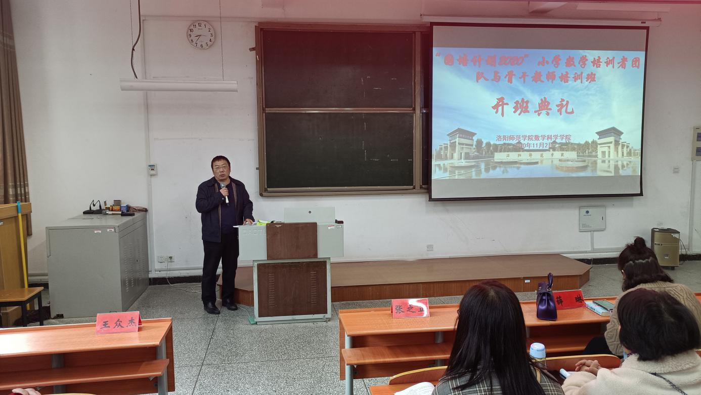 11月2日上午,洛阳师范学院“国培计划2020”小学数学培训者团队与骨干教师培训项目开班典礼于A10-103教室举行,数学科学学院院长张之正、培训班主任薛琳、张丽、常水珍、张国利出席此次典礼。此次开班典礼由王众杰老师主持。