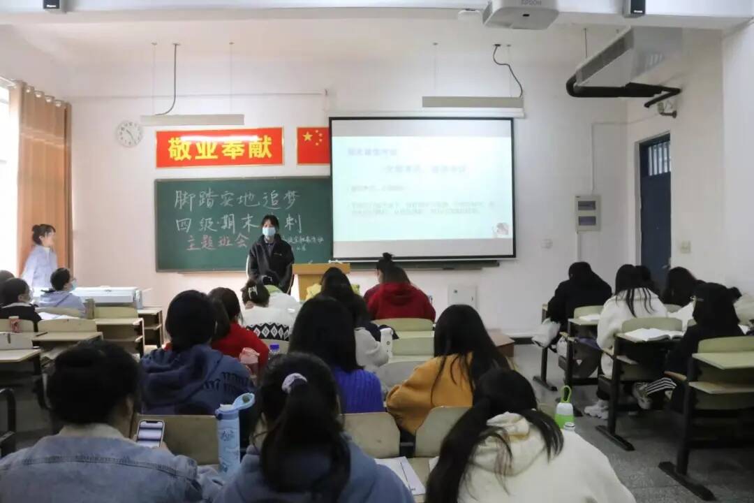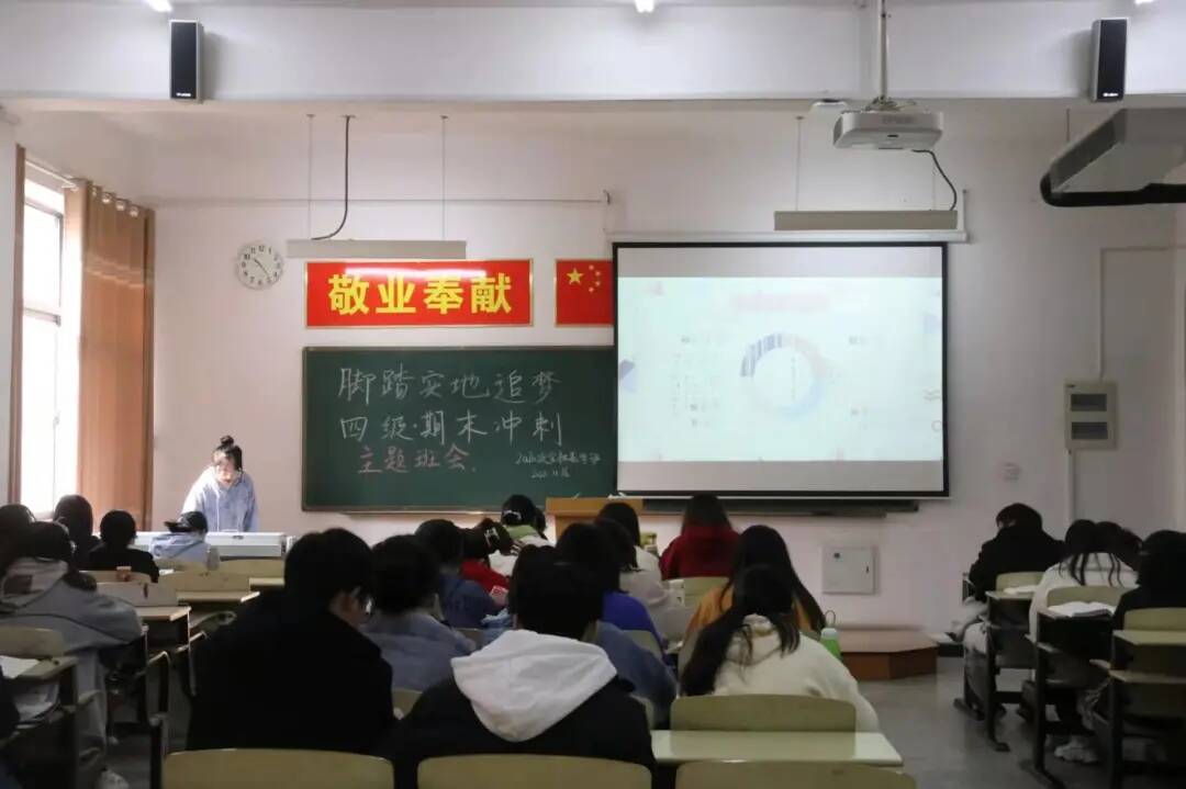 期末考试和英语四级即将来临,为帮助同学们在考试中取得好成绩,20级金融数学班举行了以“脚踏实地追梦,四级·期末冲刺”为主题的主题班会。
