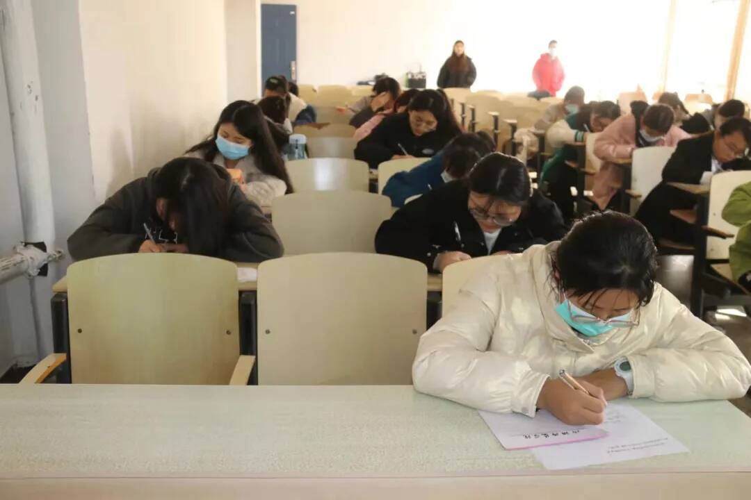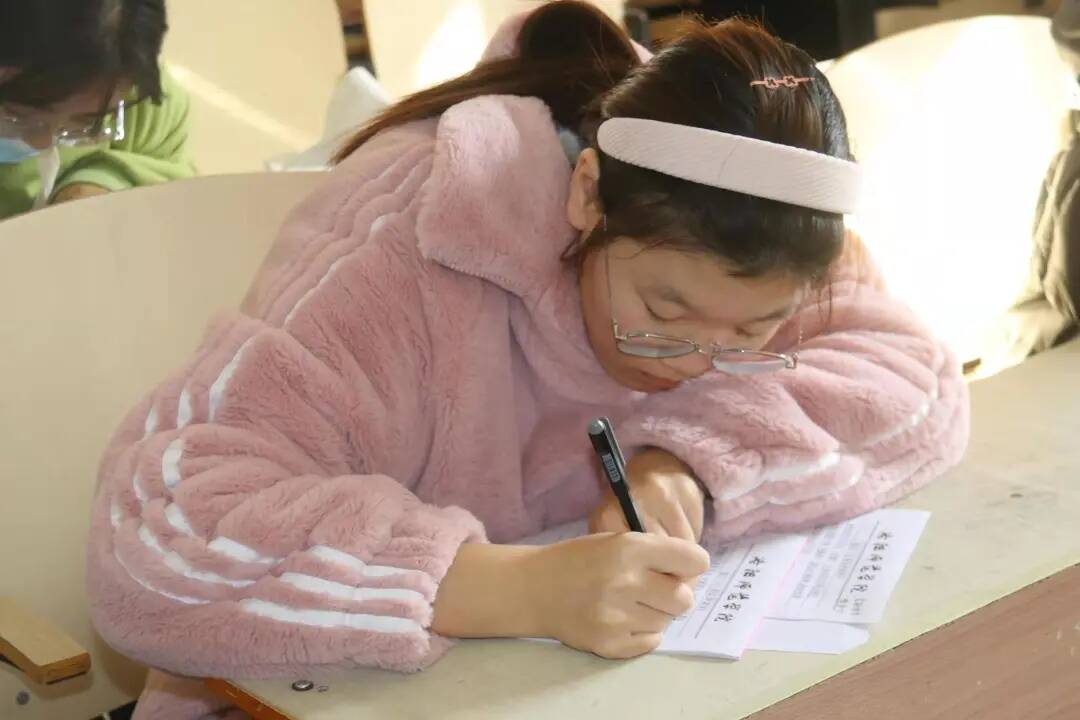 比赛过程中,同学们认真的身影呈现在我们眼前,自觉遵守比赛规则,用纸和笔书写对百年党史以及红色血脉的感想,对党的敬畏之心。