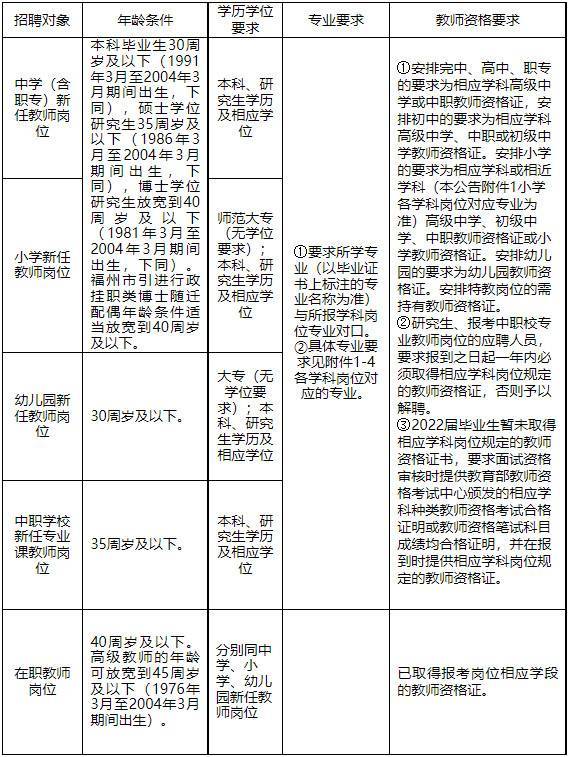 本批次招聘对象不含福州市在编教师。其他编制内人员报考,需在面试资格审核时提供经单位主管部门同意并加盖公章的《同意报考函》;民办学校在岗人员报考,需在面试资格审核时提供本校主要负责人签名并加盖公章的《同意报考函》。