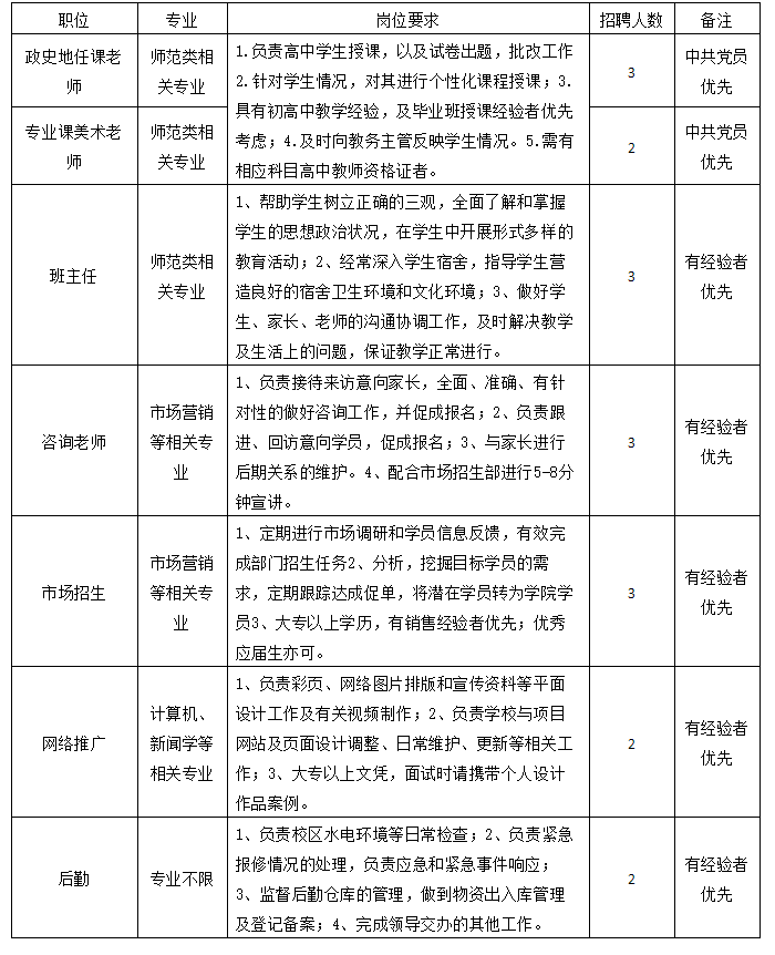 3、本科及以上学历,应往届毕业生均可,有工作经验者优先,中共党员优先。