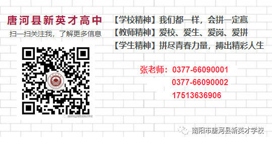 地址:唐河县广州路与福州路交叉口东南角唐河新英才高中招教招生办公室