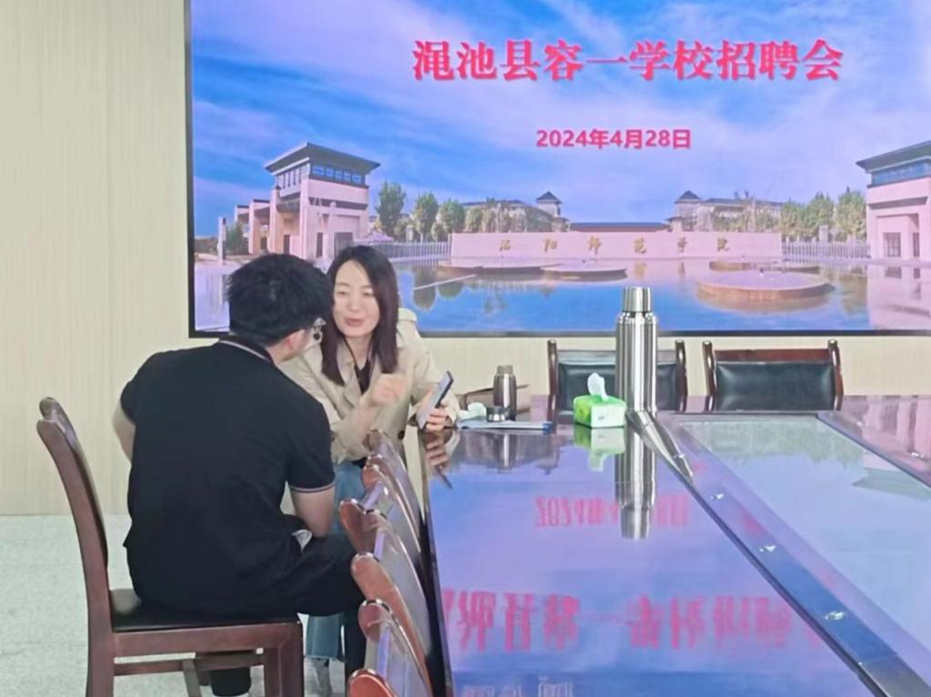 招聘会伊始,宣讲人介绍了渑池县容一学校的背景地理位置、产学研成果、院内创业发展成果、学院发展愿景、招聘岗位及人数、招聘待遇、优秀教师储备计划等方面展开详细讲解。随后老师和同学开始进行交流问答环节,收取简历并进行一对一面试,面试教师和同学通过谈话形式进行面试。最后,各学科毕业生反馈良好,且有了进行下一步面试的计划。我校再次对莅临本次宣讲会的教师表示感谢,同时也希望各位毕业生珍惜机会,积极应聘,不断提升就业能力。