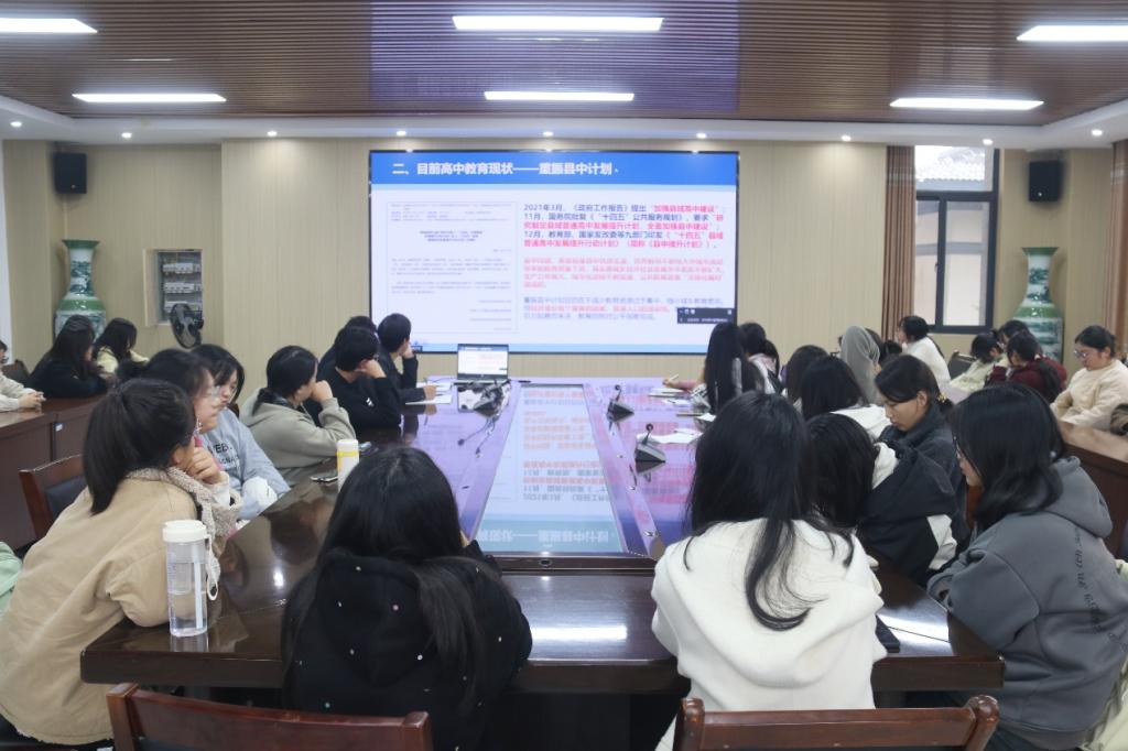 会议伊始,张国政从“个人成长经历”、“目前高中教育现状”、“当下就业形势”、“对大家进入职场的建议”四个方面详细阐述了新时代中学教育的新理念和新要求。强调中学教育不仅要传授知识,更要培养学生的创新精神和实践能力,为学生的终身发展奠定基础。要注重学生的品德教育,引导学生树立正确的世界观、人生观和价值观。最后,张国政为同学们做职业规划分析时讲到:教师肩负着教书育人的重要责任,希望同学们能积极拓展职业方向,坚定理想信念,培养关键能力,为“做一名合格的老师”打下坚实基础。