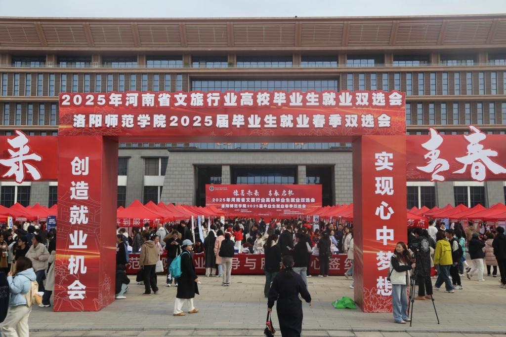 3月29日上午,“豫荐未来 青春启航”2025年河南省文旅行业高校毕业生专场招聘活动暨洛阳师范学院2025届毕业生就业春季双选会在太学广场举行。481家知名企业携2.2万个岗位进校揽才,涵盖文旅、教育、科技等领域。我院领导高度重视,学院书记董朝宗、院长刘迎照、副书记马天天、副院长张丽及辅导员们到场参加。