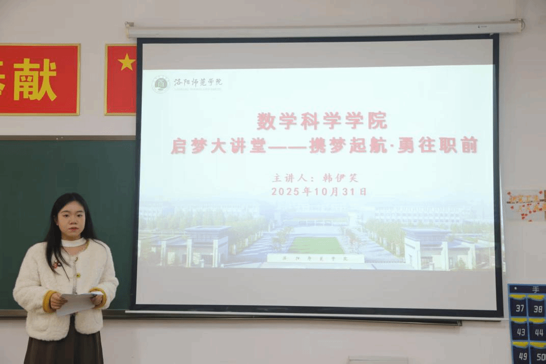 为帮助我院学生了解金融数学和应用统计专业领域的高质量就业方向,数学科学学院于10月31日下午在A10-206先后举办 “逐梦青春·研途启航”和“携梦起航·勇往职前”两场启梦大讲堂讲座,讲座分别由我院2024届毕业生王允仙和韩伊笑主讲。