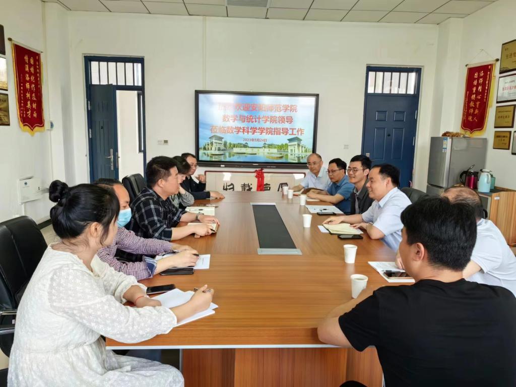 5月24日上午,安阳师范学院数学与统计学院院长姚合军一行6人来我院针对教育硕士培养工作考察交流。双方在学院413会议室举行座谈会。学院院长刘迎照、副院长王丰辉、张丽以及教育硕士相关导师等参加座谈交流。