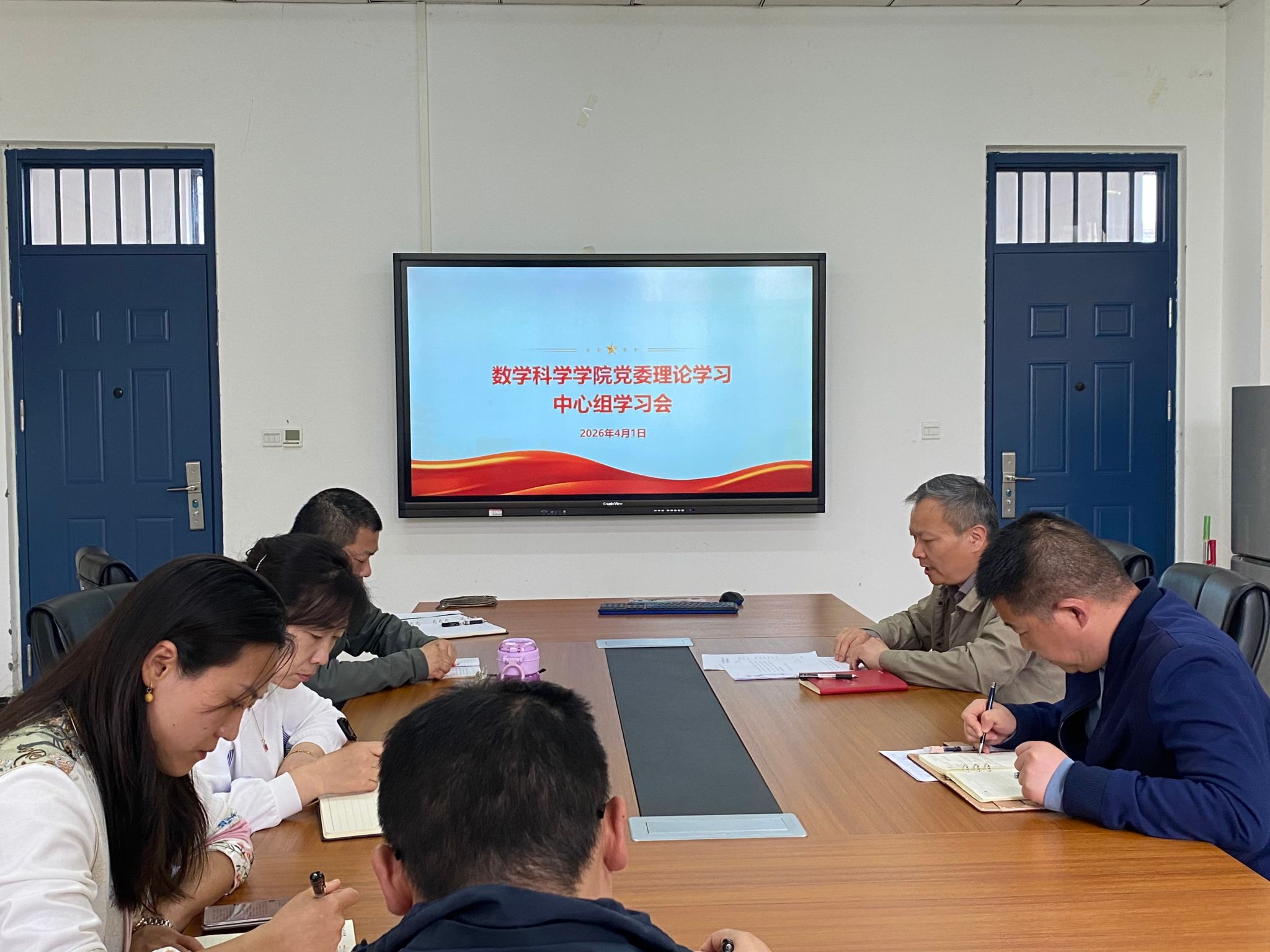 4月1日下午,我院在A10-413会议室召开党委理论学习中心组学习会,传达学习2026年全国两会精神,研究部署学院贯彻落实工作。我院党委理论学习中心组全体成员参加学习,会议由我院党委书记董朝宗主持。