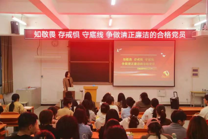 为切实做好入党积极分子、预备党员的培训教育工作,引导其正确把握廉洁修身与立党为公的关系,4月10日,校纪委监察专员办公室综合室副主任孙欢欢在A10-103为我院入党积极分子、预备党员召开以“知敬畏 存戒惧 守底线 争做清正廉洁的合格党员”为主题的专题党课。