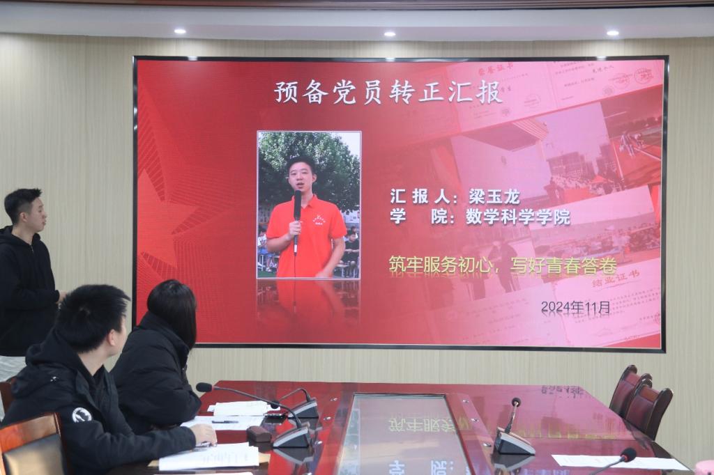 为深入贯彻落实党员发展工作要求,切实提升学生党员发展质量,我院于11月18日下午在A10-317召开2024年下半年预备党员转正答辩大会。学院党委副书记马天天、全体辅导员及支部书记代表出席会议。
