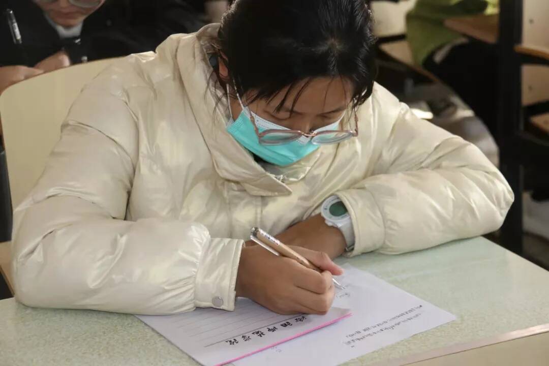 比赛过程中,同学们认真的身影呈现在我们眼前,自觉遵守比赛规则,用纸和笔书写对百年党史以及红色血脉的感想,对党的敬畏之心。