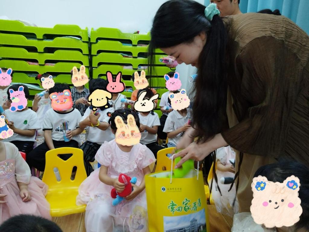 团队成员李嘉冉在活动中表演了一场花园种花手势舞,孩子们有模有样跟随着李嘉冉的动作一起舞蹈,活动现场充满了愉悦、快乐的氛围。活动结束后,“数·沐”团队给每一位孩子送上了玩偶和彩色铅笔,送去了祝福和喜悦。