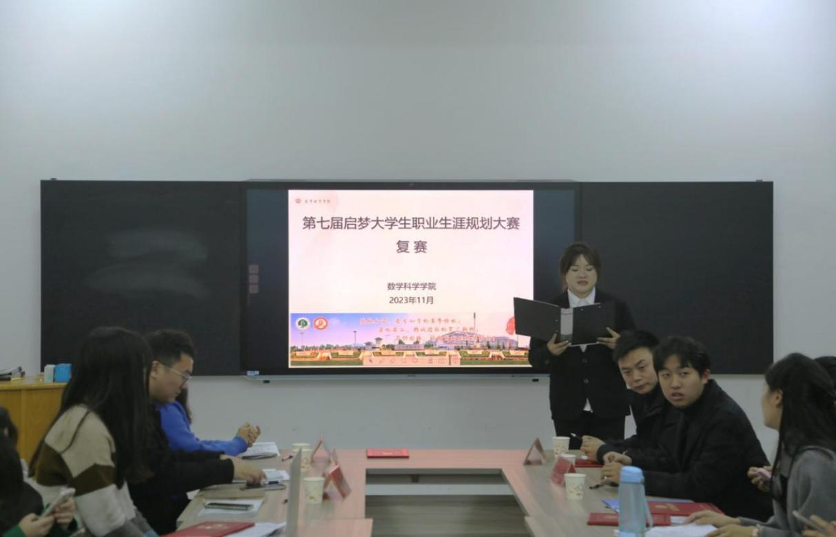 为增强大学生职业生涯规划意识,助力就业育人理念内涵式发展,我院于11月16日下午在A10-316教室举办第七届启梦大学生职业生涯规划大赛复赛。机关一党委办公室副主任赵继仙,数学科学学院辅导员薛雅琪、丁文轩、张浩、杨雅云担任此次大赛的评委。