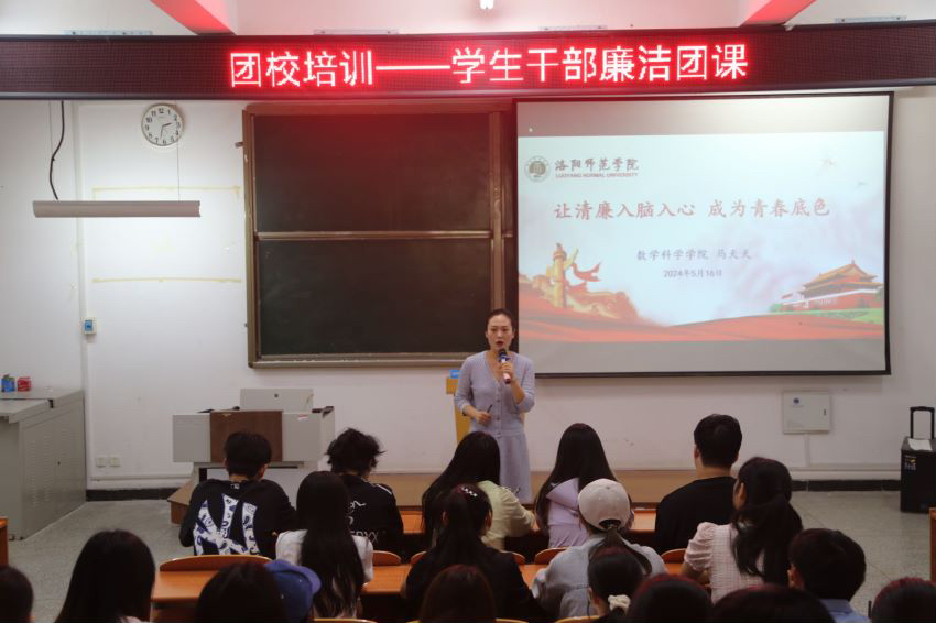 我院党委副书记马天天带来主题为《让清廉入脑入心,成为青春底色》的团课。马天天强调青年的价值取向决定着整个社会未来的价值取向,扣好清廉的“第一粒扣子”意义深远,希望同学们保持清正廉洁的数学人本色,坚守数院人艰苦奋斗、迎难而上的拼搏精神,在祖国各条战线上成就青春梦想,在实现中国梦的伟大事业中实现人生价值。