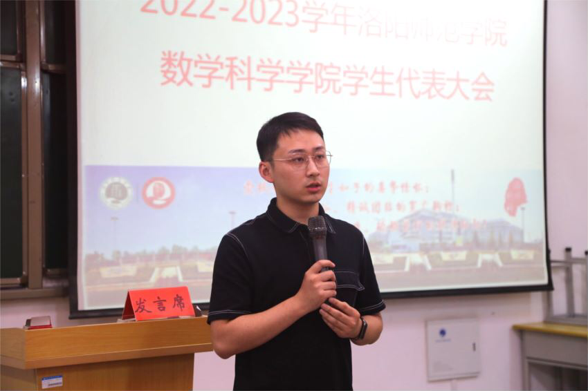 伴随着庄严的国歌声,学生代表大会拉开序幕,学生会主席李东彬作学生会工作报告,报告讲述一年来学生会举办的各项活动取得的成果与存在的不足,并对在这一年内辛勤工作的学生会每位成员表示肯定与感谢。同时,李冬彬也对下一届的学生会工作提出希望与要求。各部门竞选人员依次上台演讲,向大家展示了自身优势和工作能力,同时阐述了对学生会工作的认识与思考,以及对未来工作的规划和展望。接着,根据《数学科学学院学生会主席团选举办法》采取无记名投票差额选举产生新一届学生会主席团成员3名,分团委学生副书记1名,助理团团长1名。
