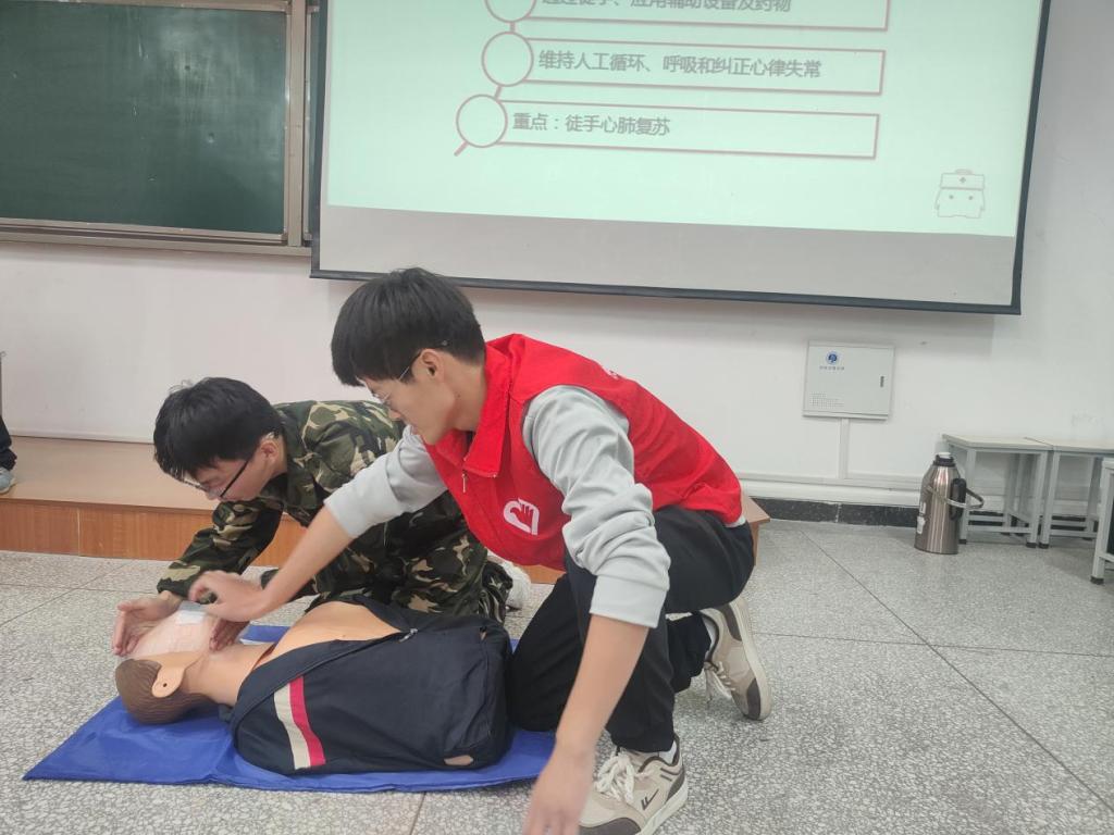 讲座伊始,老师围绕心肺复苏的定义重点讲解了心肺复苏的操作步骤和要点。其次,讲述演示了突发事件的急救流程,邀请学生亲身体验胸部按压等应急救护操作。过程中老师都耐心细致地进行现场指导,帮助学生纠正操作中的错误,让同学们深刻感受到“时间就是生命”的真正意义,掌握了基本应急救护的知识与技能。