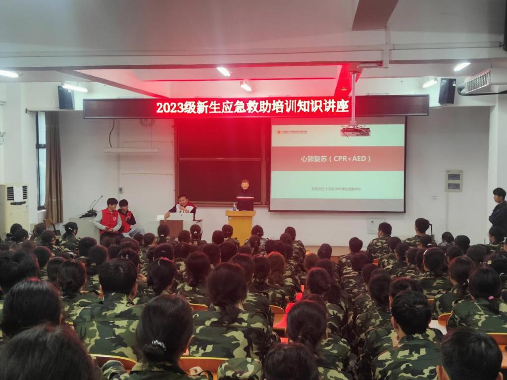为做好新生入学安全教育,保护学生身体健康,提升学生有效应对突发事故的能力。9月24日,我院于A10-103教室特邀红洛阳市红十字会老师为我院23级全体新生开展应急救护培训讲座。23级辅导员丁文轩、薛雅琪和23级全体新生聆听讲座。