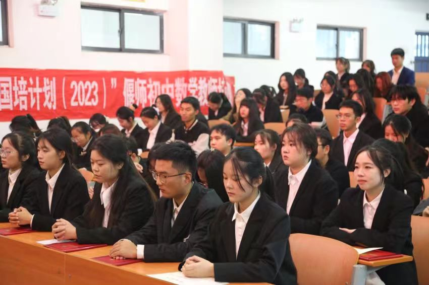 开班仪式在庄严的国歌声中拉开序幕。马天天宣读学生干部授聘决定,新一届学生会主要干部依次上台领取聘书并合影留念。董朝宗宣读第一期青马班结业决定,对青马班成员取得的成果表示赞扬与肯定,为第一期参加培训的青马班成员颁发结业证书。接着,李安珂说明培训课程安排及纪律要求,对新一期青马班成员表示热烈欢迎并给予诚挚祝福。上一届学生会主席代表李冬彬分享工作心得,希望学生干部们能发挥聪明才智,为建设特色鲜明的地方高水平师范大学贡献青春力量。新一届学生会干部代表杨佳康表示,作为学生会的新鲜血液,将充分发挥示范引领作用,以实际行动践行“请党放心,强国有我”的青春誓言。董朝宗对学院团学干部和青马班成员们提出四点希望与要求:一是要加强思想政治引领,使广大青年学生坚定不移的听党话、跟党走;二是要始终坚持围绕中心服务大局,团结带领广大团员青年为推动学校改革发展贡献青春力量;三是要充分发挥共青团服务育人优势,切实为团员青年成长成才服务;四是要从严治团,转变作风,不断开创共青团事业发展新局面。
